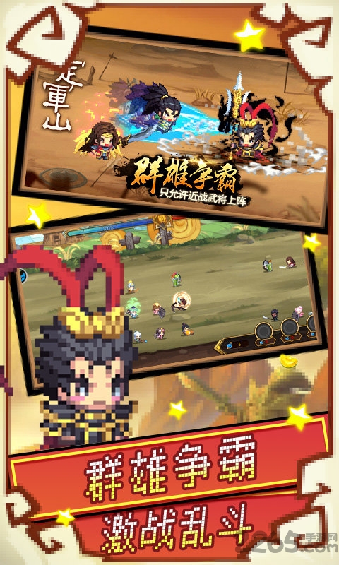 这是一款非常精彩的三国题材手机游戏。游戏采用了像素画风设计,玩家将扮演一名统帅,可以招募三国名将,不断扩大自己的势力范围,率领自己的军队征战天下,完成三国统一的大业,书写属于自己的三国传奇故事。